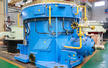 主電機通過減速機帶動磨盤轉動,同時風從進風口進入磨機,物料經螺旋給料機下料口落在磨盤中央,在離心力的作用下,物料從磨盤中央向邊緣均勻移動,經過磨盤上的粉磨輥道區域時,受到磨輥的碾壓,大塊物料直接被壓碎,細粒物料受擠壓后形成料床進行粒間粉碎。被粉碎的物料繼續向磨盤邊緣移動,直到被風環處的強氣流帶走,而較大的顆粒物料又重新掉落到磨盤上繼續粉碎,氣流中的物料經過上部的分離器時,在分離器葉片的作用下,粗顆粒重新回到磨盤上粉磨,合格的細粉隨氣流一起出磨,被系統的集粉器收集,被收集到的粉料即為超細立磨磨出的產品。混入物料的鐵塊等雜物隨物料運動到磨盤邊緣時,由于自身重量大而不能被風吹起,跌落至磨機下腔被安裝在磨盤底部的刮料板刮入排渣口排出機外。
