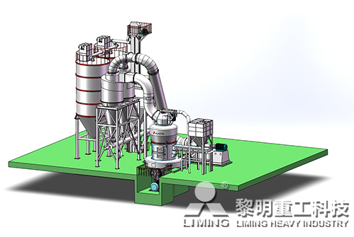 破碎后合格的物料,經變頻皮帶給料機均勻定量連續地送入主機磨室內進行研磨。粉磨后的物料被風機氣流送入選粉機進行分級,在分析機的作用下,不符合細度要求的物料落入磨室內重新碾磨,合格的物料則隨氣流經管道進入旋風集粉器內,進行分離收集,經排料裝置排出即為成品粉體。分離后的氣流通過旋風集粉器上端回風管進入風機。該系統在正負壓狀態下運行,設備配有脈沖除塵器,符合國家環保標準。