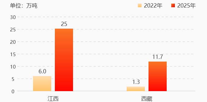 2022-2025中國(guó)鋰資源產(chǎn)能增長(zhǎng)